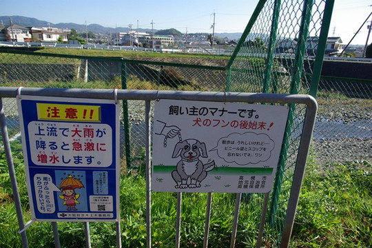在高槻,很多地方可以看到一个宣传告示,这是给那些宠物的主人们的。上面说的是“带着宠物散步的确很愉快,但是切勿忘记带上塑料袋以及铲子,清理粪便是主人们的好习惯。”想起来,我经常在东莞的小区看到那些宠物们的主人,放任宠物们四处大小便,她们在享受着无比快乐的同时,小区也俨然成了宠物们的公厕了。