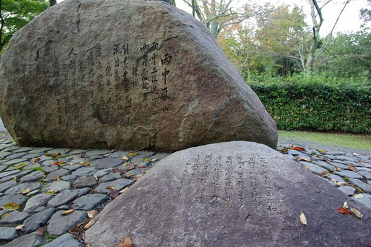 1919年4月5日,当时留学的周恩来在游览的时候,曾经题诗一篇《雨中游》。1979年,的当地民间人士和团体捐款购买了的这一块地,并立石碑用于纪念周恩来,石碑上镌刻是廖承志书写的《雨中游》。