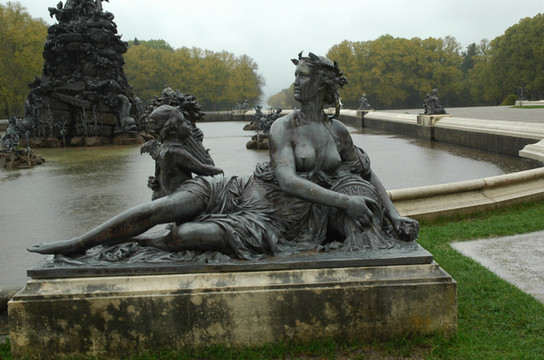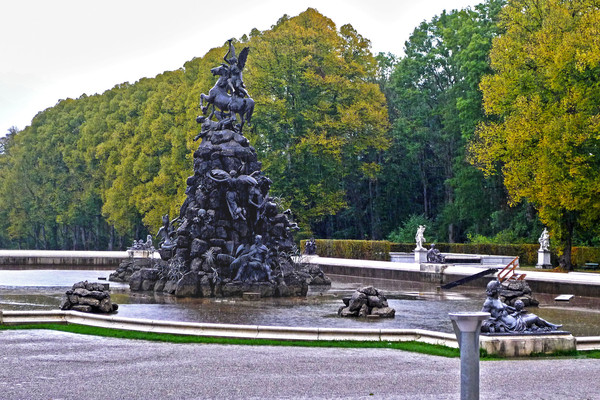 经过丛林小道中十几分钟的穿梭,很快来到岛上的宏伟皇宫。皇宫前左右两侧是两座主体喷泉,也是模仿凡尔赛宫建造的。喷泉以石山为依托铺排架构,远远望去就像是一件精美绝伦的艺术品,可惜因为下雨,拍摄的效果不是很理想。