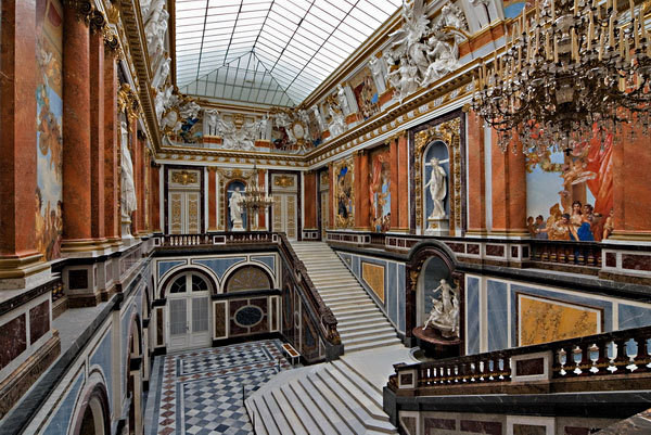 在皇家卧室,使用了国王最喜爱的蓝色,大量镀金的豪华卧床用带有维纳斯和安东尼斯的场景进行装饰,床上华盖上的貂毛象征国王尊贵的地位。