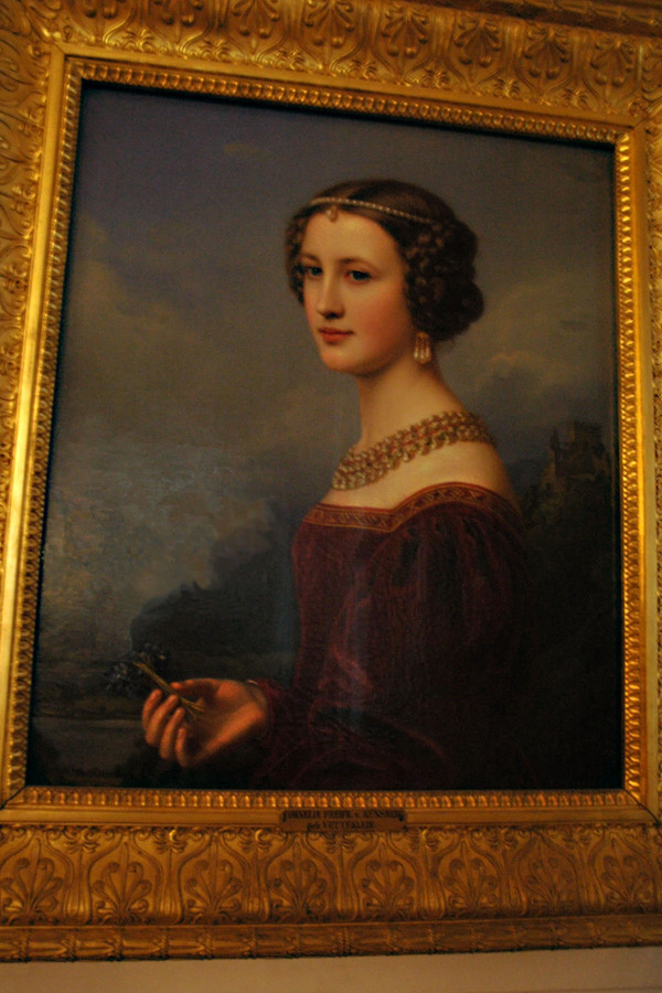 Vetterlein)。她是一位巴伐利亚议员的女儿,在画作中被表现为传统的德国城堡淑女形象。她看上去是那么地雍容华贵,恬淡静雅;那温婉娴淑、千娇百媚的神情让人百看不厌,移目不忘。一种宛若天成的美丽和非凡的气质,至真至纯、可爱致极。我非常认真地把她拍了下来,这张照片也成了我在这次旅行中最得意的摄影作品之一。不过,我特别喜欢这张照片的主要原因只能悄悄地告诉你,她真的有点像我的老婆呢,哈哈!