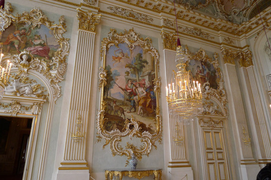 在宫殿内众多的厅堂中,最值得一提的有两处,一处是“女子肖像画廊”,殿堂的四周墙上挂满了许多风姿绰约的女人肖像;另一处是“中国之阁”,里面的装饰摆设全是中国古典式的珍品。