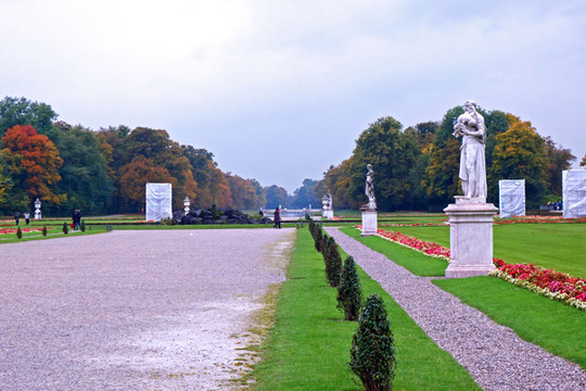 离开市中心,下一个目标前往宁芬堡(Nynphenburg)王宫。宁芬堡宫说是坐落在的西郊,其实开车也不过十几分钟。那是一组由巴罗克式、洛可可式和古典式建筑风格为一体的建筑群。周围是宫廷式园林和广阔的草地林木。它最初是维特尔斯巴赫家的夏宫,18世纪初,选帝侯马克斯将他母亲的乡间别墅扩建成豪华的巴洛克宫殿。整座宫殿坐西朝东,由几幢两翼对称的方形楼房连结而成,长达600米。宫殿前有一池清水,可以看到天鹅和野鸭在里面随意玩耍。