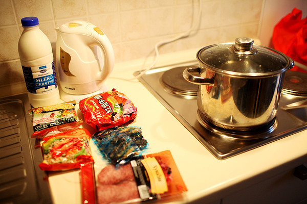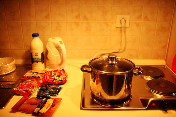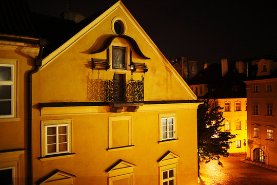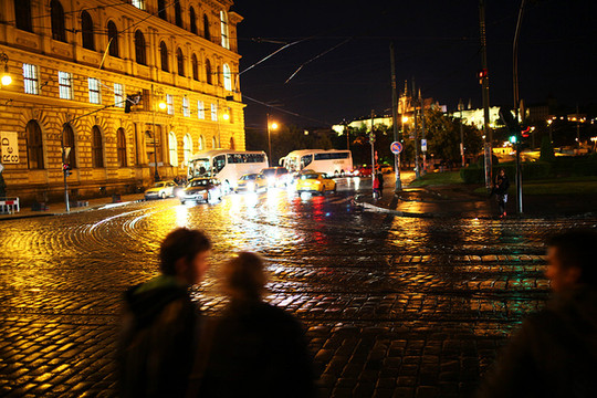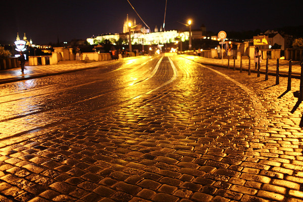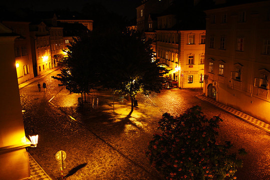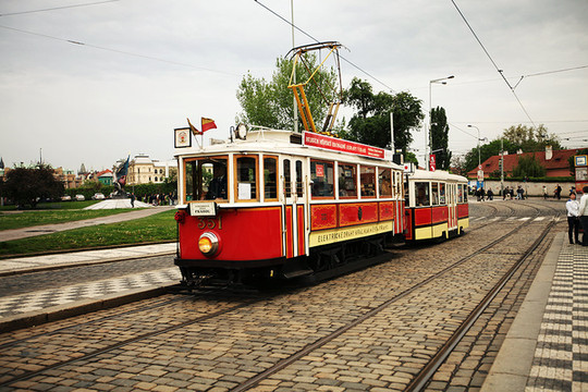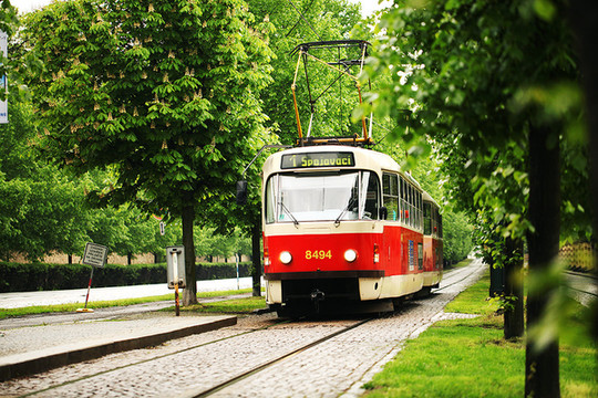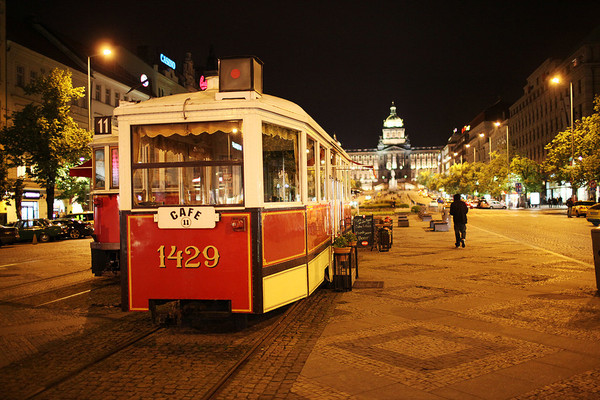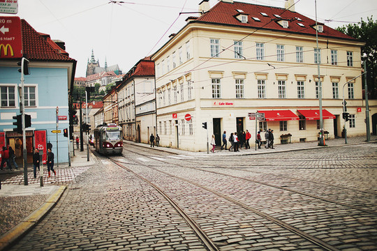 这一日我们从的住所出发走到车站,坐15:05的大巴去布拉格。15:40左右途径捷克布杰约维采,16:30途径皮塞克,17:55左右到达布拉格。在布拉格停留了2天,老城区不大,如果脚力够好,可以全程徒步。第一天到达布拉格,已经是晚上,住所能看到很美的火烧云。我们决定简单吃一顿从中国带来的泡面!吃完晚饭,匆匆从住所经过窄窄的小巷,到广场上走了一下。有轨电车是一道风景线,铁轨镶嵌在石板街道上,在路灯下闪着微光。