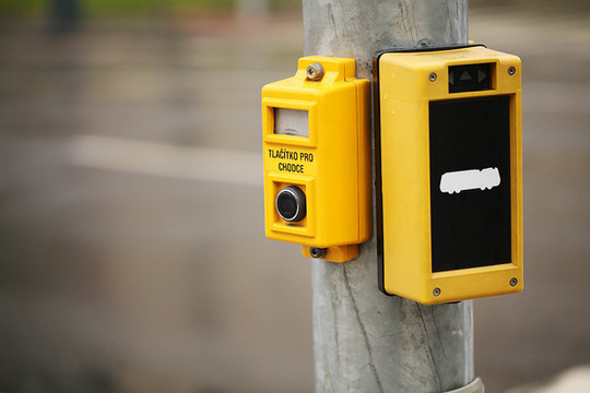 这个机器摁一下就会变成红灯。方便行人过马路。