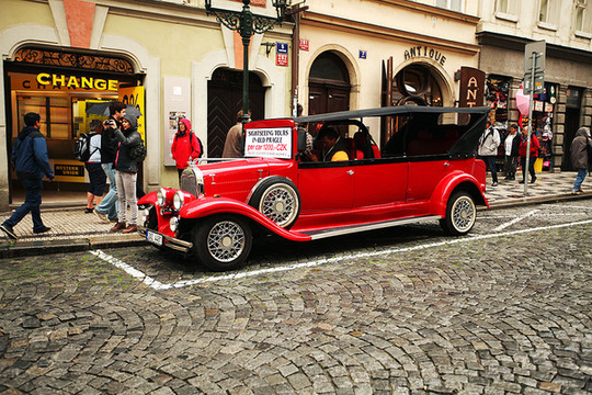 在布拉格这样的老爷车很多,还有马车,跟维也纳有点相似。