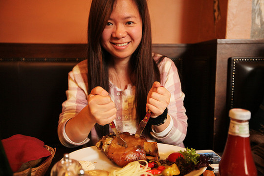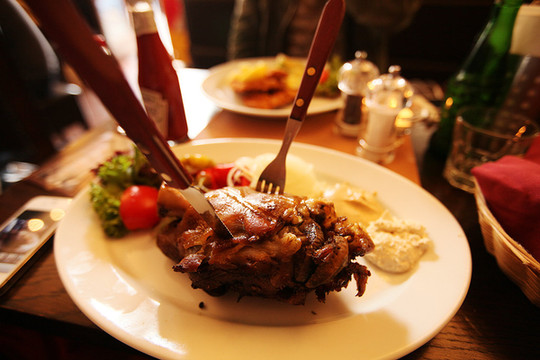 走走饿了就在路上一家不知名的小餐馆吃饭,好大的猪肘子