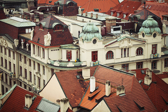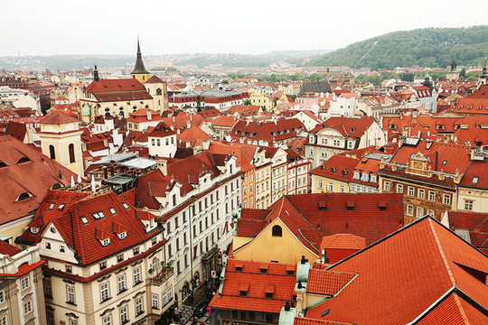布拉格的建筑和古迹:经历了二战,布拉格成为全欧洲唯一一个没有被炸毁的城市,所以保留了各个历史时期、各种风格的建筑和古迹,从罗马式、哥特式建筑、文艺复兴、巴洛克、洛可可、新古典主义、新艺术运动风格到立体派和超现代主义。布拉格建筑色彩极为绚丽夺目(红瓦黄墙),被称为“千塔之城”、“金色城市”。1992年,布拉格历史中心列入联合国教科文组织的世界文化遗产名单。