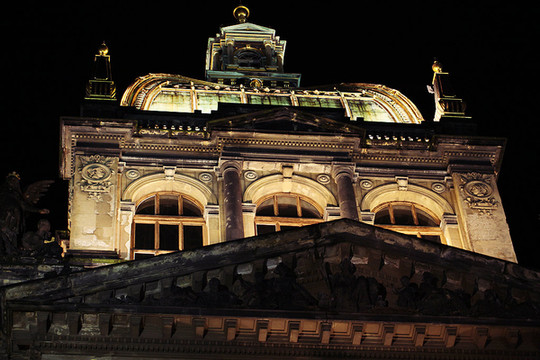 夜晚的博物馆前