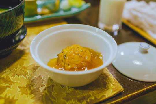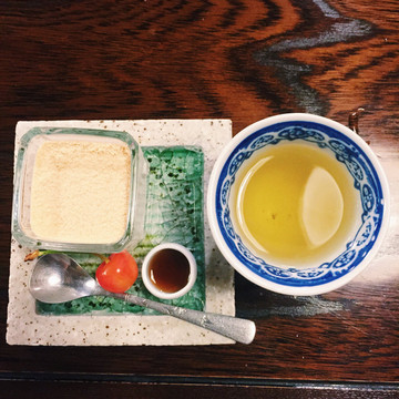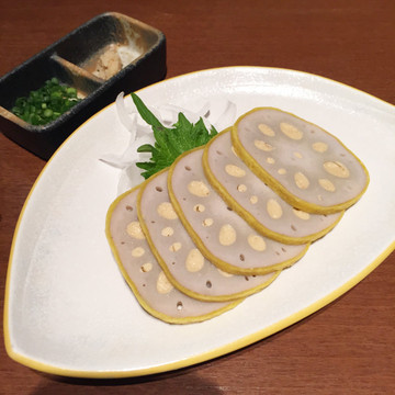 熊本另外一道有名的菜就是这款 芥末藕片。中间黄黄的就是芥末酱