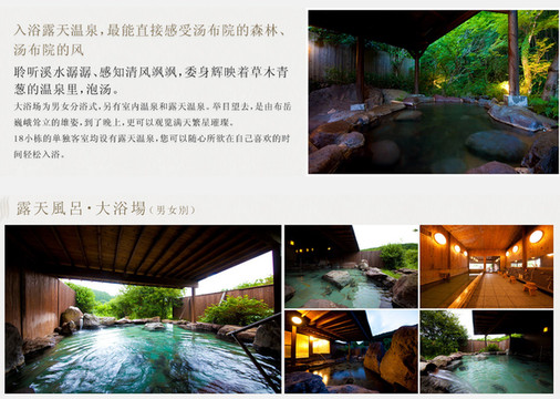 因为由布院主打温泉,所以大部分的酒店都是半食宿的温泉酒店。较为有名的几家酒店是龟井别墅、玉之汤、山旅馆梦想园日式温泉酒店、月灯庵等等。这几家温泉酒店人均价格大约3w日元左右。
