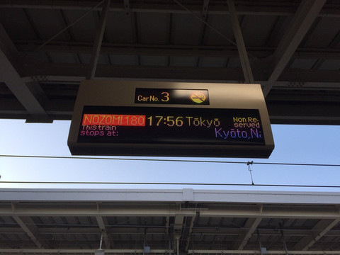 新大阪到了后依然是按照指示牌,找到新干线的售票处。购票,候车。新干线分为指定席和自由席。自由席(1-3号车厢任意上车找位置,也可能没位置)。