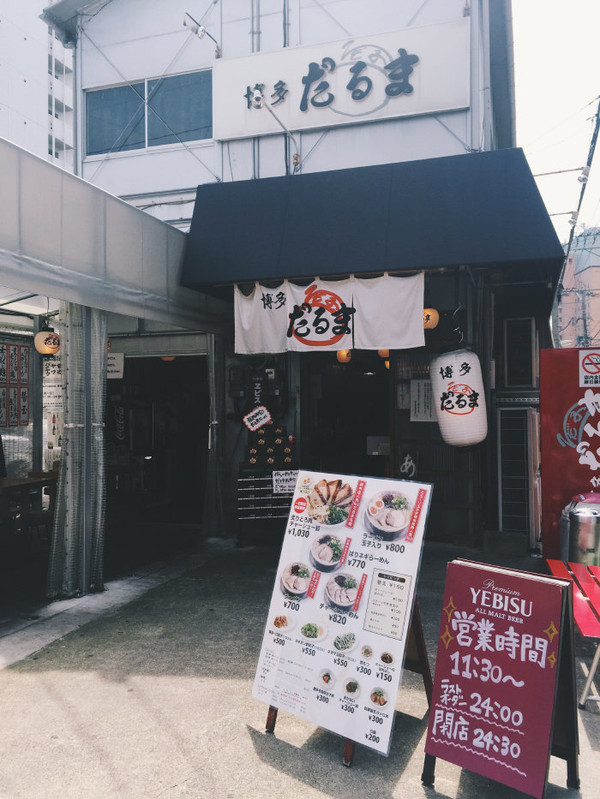 除了一蘭拉面,我选择了另外一家本地人经常光顾的小拉面店博多だるま ,份量很足,汤汁浓厚。不过一直不喜欢吃面的我,一大碗自然没有吃完。。