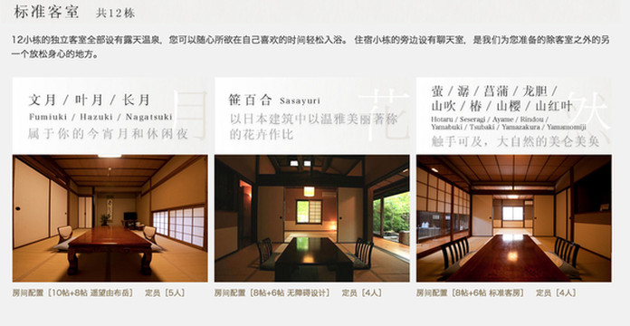 房间:总共18栋,6栋特别客室,12栋标准客室。