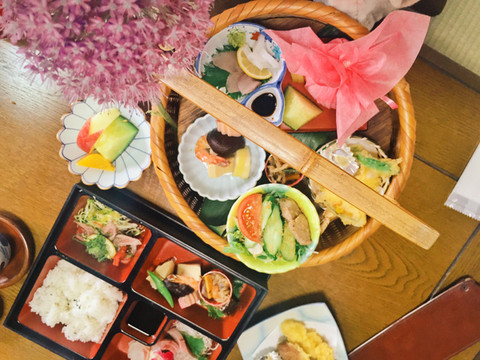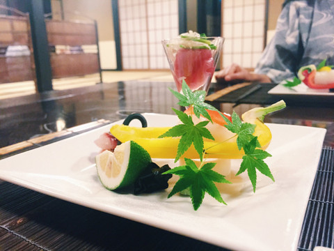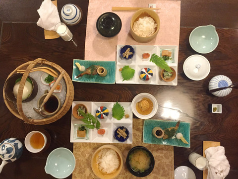 早餐和晚餐是含在房费里。餐食是优选季节食材的怀石料理。摆盘精致到不忍下口!