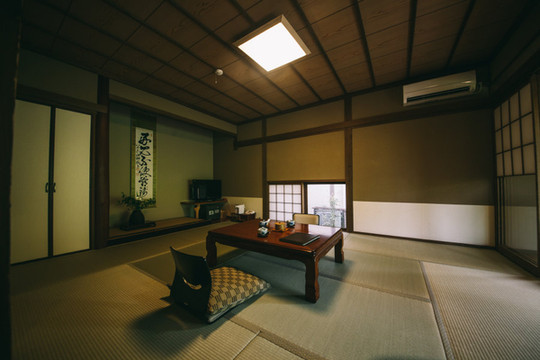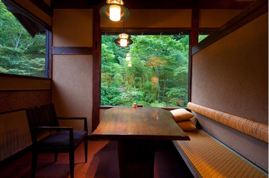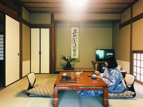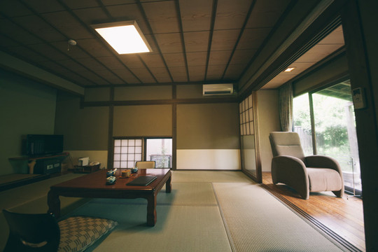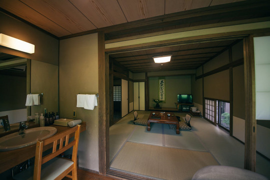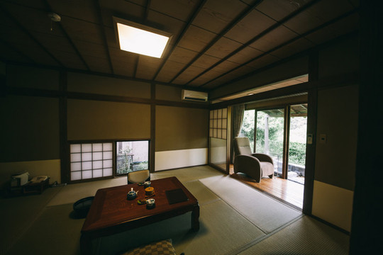6栋带腰天温泉的客室是以古代的“茶室”为主题设计的客房