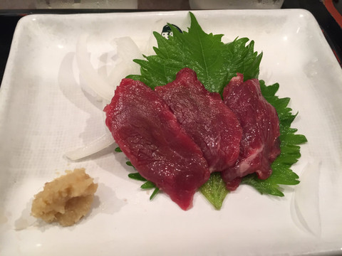 熊本的饮食风格以自然取向为主,多半的店家都是标榜使用熊本当地原产的食材为原料而创作出的各种风味料理。初次到此的游客,最吸引他们眼球的则是不少写着“熊本乡土料理---马肉料理”的牌子,而且到处都可以看到卖马肉的店铺。马肉在这里也被称为“樱肉”,由于切成片的马肉一接触到空气,肉色就会马上变成樱花色而得名,是节日宴席上不可缺少的菜肴。熊本的马肉料理种类很多,有生马肉、串烧、马肉烧肉、马肉涮涮锅、马肉樱花味噌锅、马内脏锅、马肉角煮、马肉天妇罗、马肉饭团等,烹调方式超过40种。据说,马肉易消化,多吃不腻,而且马本身体温很高,抗菌性很强,所以才可以作为食用刺身。马肉含矿物质比牛肉和猪肉都高,高蛋白低胆固醇尤其适合爱美的女性。另外,马肉含有降低胆固醇的脂肪酸,对老年人也有益。加上马肉本身无异味、微甜、肉质柔软,在游客中异常受欢迎。