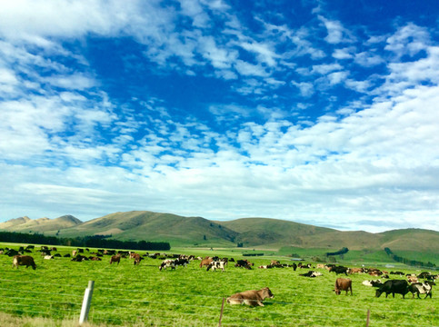 路边肥美的草地和遍地的牛羊