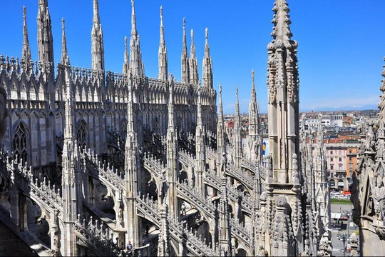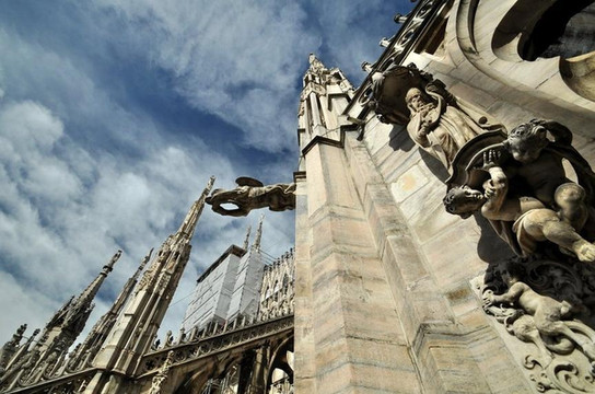 整个大理石建筑将所有太阳的光辉吸收又散发出来,而那些尖顶又像是与天堂相连的节点,让本是沉重的教堂飞了起来。一定要登顶看一下米兰的老城,那里才可窥探这个时尚之都沉淀住的历史。