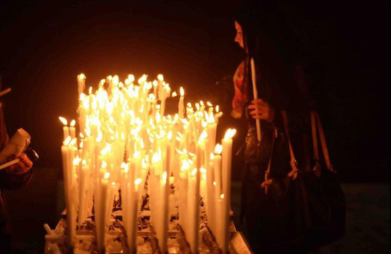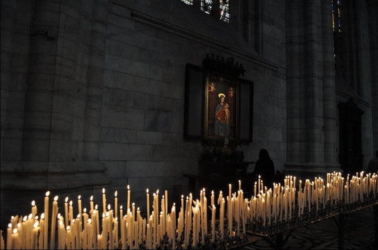 走到祈祷蜡烛的长桌前,感受到烛焰在脸前跳动着微烫的热度,有年长的女子将手中点燃的蜡烛安放到烛台上,有信仰真的是幸福的,带有敬畏之心和希望之力。