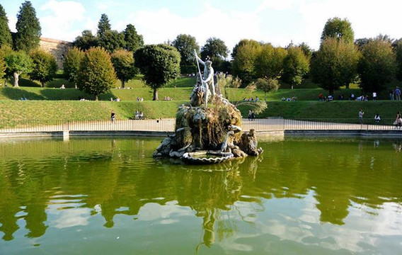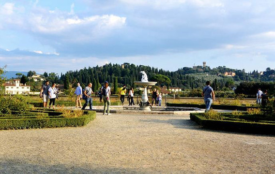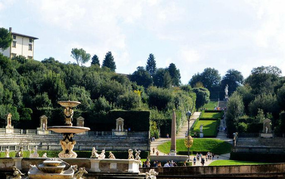 波波里花园式佛罗伦萨最特别的一处景点,典型文艺复兴式的花园大气几何对称的设计,三级台阶逐级升高,登顶后前可远眺佛罗伦萨市,走到后边的观景台,立刻置身另外一个世界,一副绝美广阔的山林加田园风光出现在你的面前,让人感叹花园设计者将人工和自然结合得如此之美。