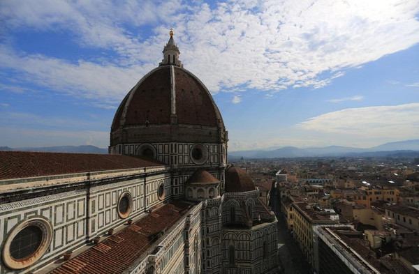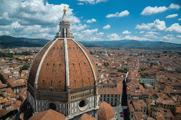 俯瞰大教堂的穹顶,才能真正体会到宏大致美的境界。漫步翡冷翠街头,有时候会有很多超越自己世界观的事情浮现。比如,一座现代化的佛罗伦萨城,最高建筑竟然是中世纪留下来的钟楼和教堂。每个人都住在看起来就有百年历史的房子里,浸淫在无数世界级雕塑和绘画的环境里。这样的环境下诞生出来的人怎么能没有品位,怎么能不懂生活。他们当然懂得欣赏美、设计美、创造美。