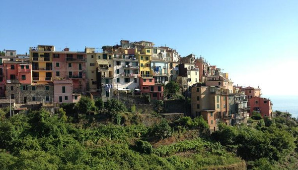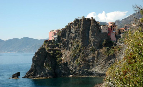 科尔尼利亚建在沿海的山岩上,在五渔村中海拔最高;镇上那漆得五颜六色的四层楼房与岩石的灰黑色产生鲜明对比。