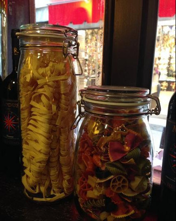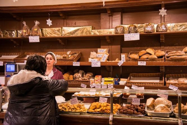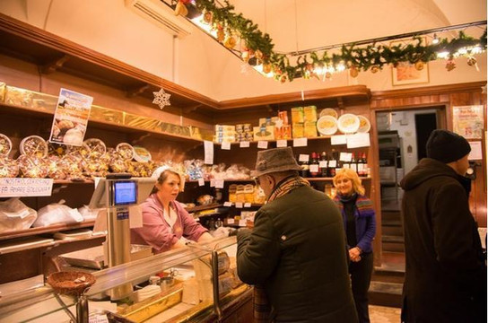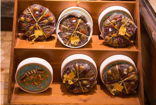 这是一家食品店。它的大堂里玲琅满目地摆放着很多当地的传统食品,包括各种手工或者包装好的意大利面条,来自大区内部的各式火腿和肉肠,意大利的红酒,还有不少已经制作好的半成品烤鸡,烤鱼食品。