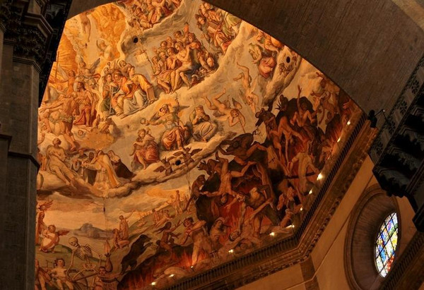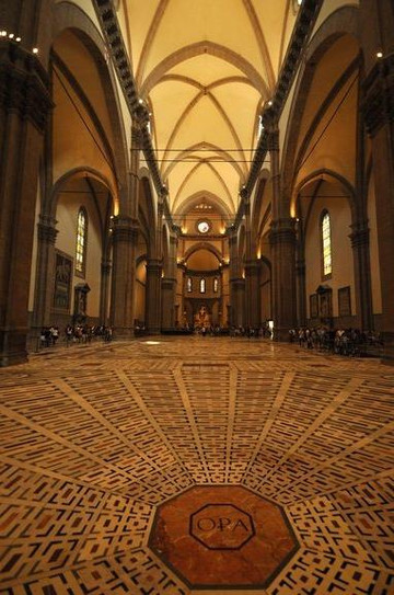 教堂的内饰相比浮夸的外表,倒是很朴素简洁,但真正让圣母百花成为世界五大教堂之一的,是它与佛罗伦萨城近20个世纪来的彼此依存。教堂地下室有个声光文物展,将大教堂自1世纪罗马征服时代的奠基、到基督教文明、再到中世纪和文艺复兴4个发展时期的呈现,很震撼。