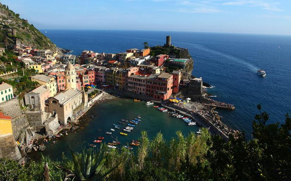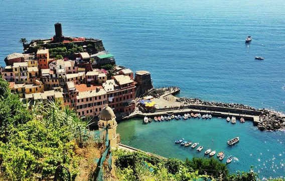 韦尔纳扎坐落在利古里亚海岸一个向外伸出的岬角上,是五渔村唯一一个没有海滩的渔村。但拥有得天独厚的美景。彩色的小房子由陡峭的石阶相连,环抱着清澈的港湾,重重叠叠地向大海延伸,和海边的教堂和城堡一起,构成了错落有致的小镇风景画。