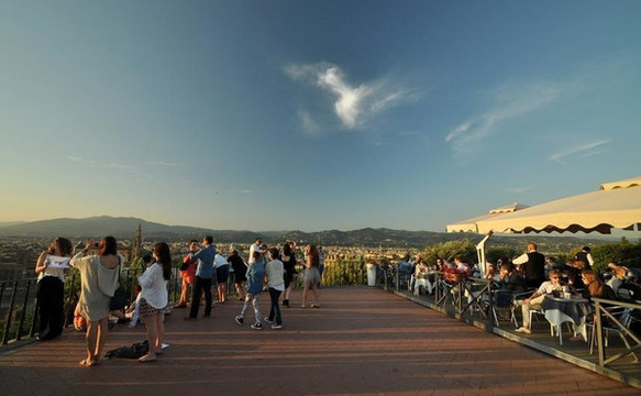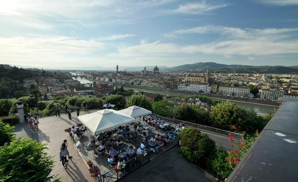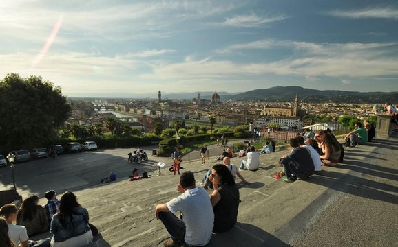 广场位于佛罗伦萨市区南端的高地上,站在广场上,是眺望佛罗伦萨市全景的最佳地点。从广场向佛罗伦萨城内望去,红色砖瓦、古式建筑、阿尔诺河、圣母白花大教堂的圆屋顶等等都看得清清楚楚,全景的佛罗伦萨更显古老和典雅。