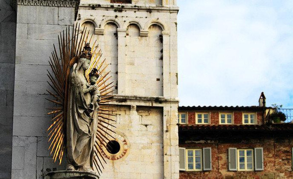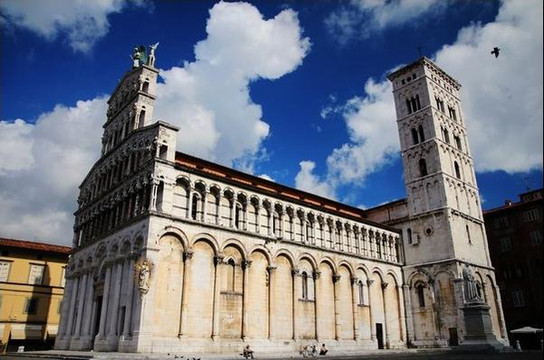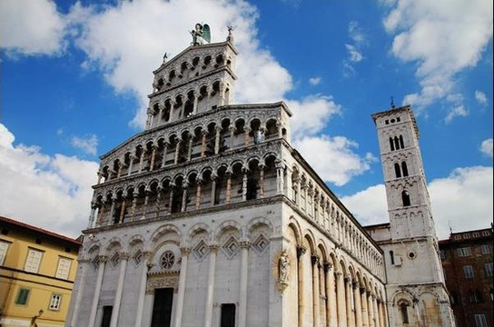 圣米歇尔教堂是卢卡最大的教堂,各个柱子上增加了很多精美的雕塑,最有名的就顶部中央的高达4米的圣米歇尔雕像,是用铜制成,夕阳西照时雕像会反射出耀眼的金黄色光。