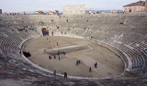 如果就竞技场相对于所在城市大小的比例来说,那维罗纳圆形剧场比罗马斗兽场更有气派,因为其本身并不小,保护和修缮都还不错。