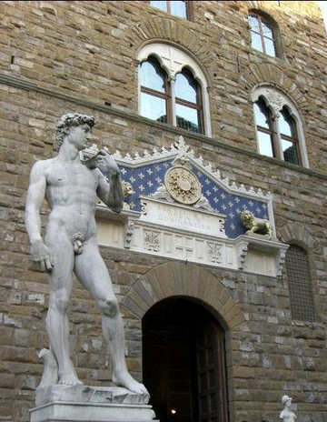 可以说,没有一座城市象佛罗伦萨那样对同一座雕像钟爱到如此程度,这里到处可见“大卫”的影迹,这座米开朗琪罗当年应佛罗伦萨共和国的邀请专门制作的作品,它在佛市市民心中扎根开花,已经成为佛罗伦萨自由自强的象征。