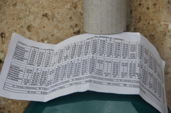 离拉斯佩齐亚最近的五渔村村庄就是里奥马焦雷,从拉斯佩西娅火车站转小火车到这里。在五渔村旅行可以购买五渔村卡Cinque Terre card,该卡现在分为包含或不包含火车旅行的两种。持两种卡都可以免费使用步行浏览线路(爱之路)无需额外花费5欧。在车站或旅游咨询中心能买到此卡,可无限次乘坐城镇间火车的一日卡为8.5欧。买了五渔村卡后,别忘了拿一个列车时刻表,火车严格按照时刻表运行,按照时刻表规划旅行线路,可以节省很多等车的时间。注意,有的车次在某个车站是不停的。