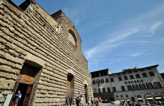 教堂两侧相对的地方是分属于Michelangelo和Brunelleschi的新旧chapel,不同时期的大师,可以看到期间的变化。他们都比我想象中的尺度更大,这一点在各种palazzo身上更是如此,所以旧圣器室略显空旷,充满雕塑感的新圣器室显得更精致。它的正门呈对称的几何形,粗陋的石头爬满墙面,好像长久以来铺上的时间脚印,充满了一种别致的韵律感。文艺复兴时代的大师米开朗基罗曾经计划用大理石来装饰这里的粗墙,却没有最终实现,倒让这种别具一格的感官冲击留到了现在。