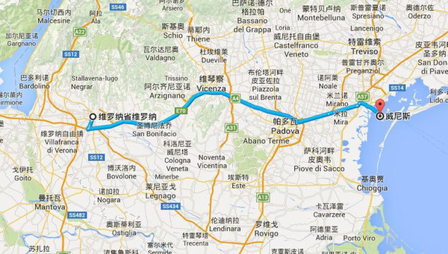 米兰到维罗纳,往东上A4高速,中途要经过一个收费站,大概是收费10.4欧。虽然路口和小环岛很多,但是从来没有车或者人突然窜出来,所以开起来很省心。