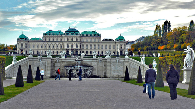 Kolbeck),在酒店安排好住宿,把车停放在酒店的地下停车场,大约在下午2点钟开始去市内参观。因为维也纳市内非本地车辆行车难,停车也难,所以采用市区交通工具和步行是最合适的。我们乘坐公交车从宾馆到达公园位于老城区东部环形大道旁边的城市公园,在那里逗留了半个小时,随后徒步去市中心的斯特凡大大教堂。粗略参观后又乘坐71路电车去美景宫游览,傍晚时分返回市区。晚上6点前往维也纳“金色大厅”,在金色大厅里欣赏一场音乐会。