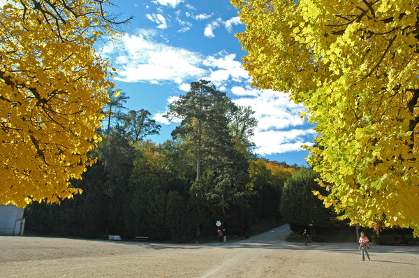 这是一段走在童话世界里的路。周围的一切美得让人心跳,美得让人心醉,到处都充满着诗意画意,显露出大自然神秘的魅力。造物主在这里毫不吝啬地使用了各种绚丽烂漫的色彩。给人以强烈的视觉冲击!如果此时此刻能够配上奥地利音乐家小约翰·施特劳斯那首“维也纳森林的故事圆舞曲”,从而产生出那种极其美妙的音画共震效果,那该是何等的视觉和听觉享受啊!秋色伊人,承载着人们多少的情怀和思绪?身临其境,恍然若梦,你不仅可以用眼欣赏,用耳聆听,还可以用用心去感受,在一缕清风、一片落叶中去韵味到它的美妙之处。说实在的,眼前的一景一物,已经成了我一生旅途中定格的最美的一道风景线。