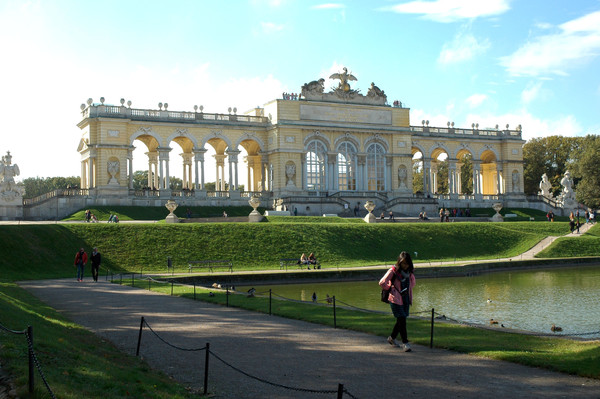 上午11.20我们赶到维也纳后,随即前往坐落于维也纳市西部的美泉宫(Schloss Schönbrunn)。美泉宫又名“申布伦宫”,曾经是罗马帝国、奥匈帝国和哈布斯堡王朝家族的夏宫,这座美丽的巴洛克艺术建筑,如今成了维也纳最负盛名的旅游景点。1996年,美泉宫和皇宫花园被列入世界文化遗产名录。