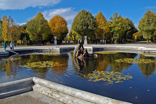 花园中央最具代表性的是那座在巨大的喷泉水池,造型精美的海神塑像一点都不逊于美泉宫。