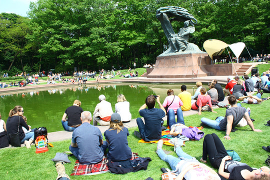 每年5-9月的星期天12:00和16:00在公園的肖邦雕像前都有露天音樂會,我們正好趕上。