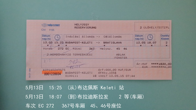 這裡要小心,一定要搞清出發地和目的地的車站名,城市名有近似,而這幾個城市都有不止一個火車站,不要搞錯了。我第一次在布達佩斯留位時,就搞錯了車站名,幸好多問了一句,否則就坐不上車了。