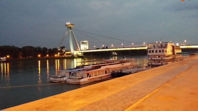 布拉迪斯拉發半天遊 (連夜景15:30-20:00)(由火车站自北向南:古城(1hr,视时间,或留次日晨)、总统府、马丁教堂、(多瑙河上的UFO),黄昏登城堡,看布拉迪斯拉發夜景。