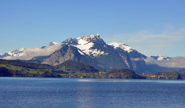 在因特拉肯车站下来,SWISSPASS 可以免费坐游船,船头的瑞士国旗迎风飘扬,湖水很清澈,可以遥望周围的雪山,远处的依山而建的小房子,船会接连停靠几个美丽的小镇。依山傍水,湖光山色。平缓澄净的湖水,山是瑞士那种山,一片树林一片草地,草地上有牛羊和瑞士用鲜花装扮了窗子的尖顶小木屋,很是漂亮。