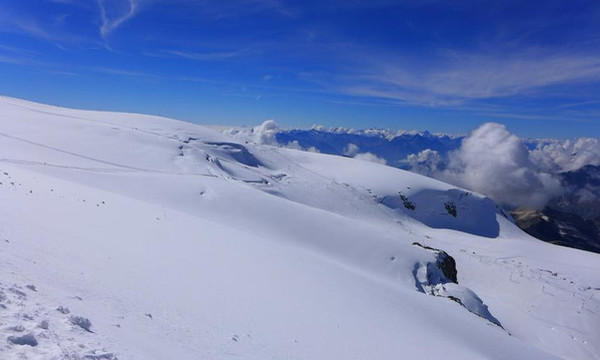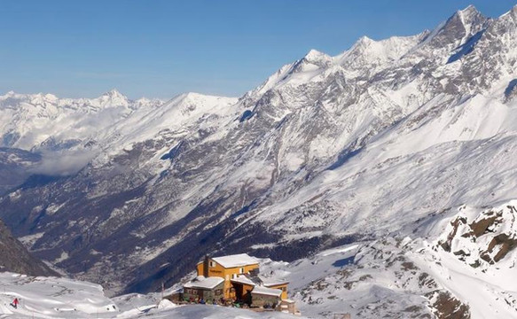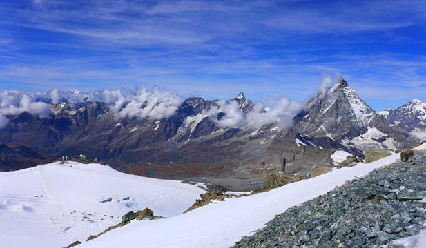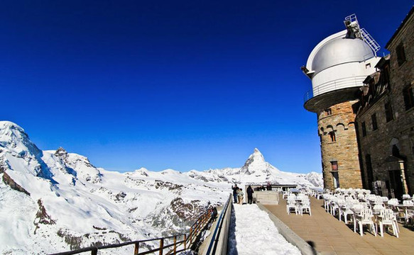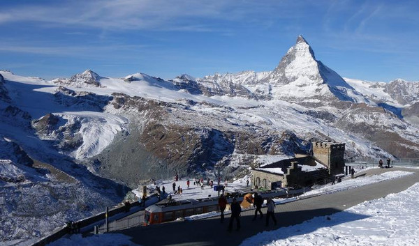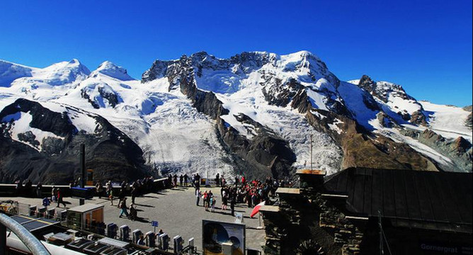 海拔3883米的马特洪峰冰川天堂为欧洲最高的缆车站及观景台,坐缆车上去的要换乘一次。买一天滑雪票ski pass79瑞郎就可以任坐,比单买票要值,还可以坐齿轨火车到Gorrotnet(和冰川天堂是两个不同的山顶)。如果在夏天可以在这里稍做停留,缆车站附近有一冰山湖泊,雪山在湖面上倒映和湖畔的青山翠草将构成一副绝美的风景画。在这里可以近距离观赏马特洪峰,看着山脉连接,感觉马特洪峰近在咫尺,提步可达。