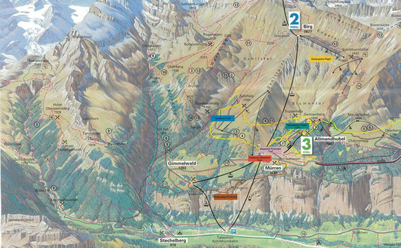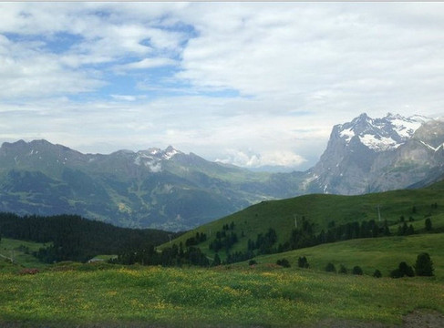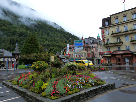 因特拉肯是少女峰地区的门户。然后往南整个山区分成东西两个峡谷。东面是Grindelwald峡谷,自驾车可以从Interlaken开到峡谷里面的Grindelwald镇,这是个很大的旅游集散中心,宾馆,餐厅,商店应有尽有。从Grindelwald可以坐缆车到北面的First峰和西面mnnlichen峰,还可以坐火车径Kleine Scheidegg到少女峰的最高火车站-欧洲之巅,还可以往东坐巴士去看蓝色冰川。