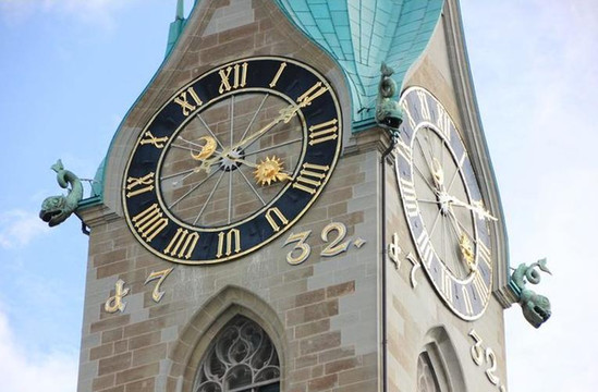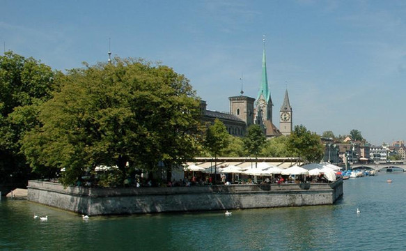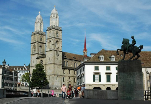 大教堂Grossmünster:独特之处在于它的双塔造形。最古老的部分是11至12世纪时建成的,拥有罗马建筑风格的走廊和雕刻,贾科梅蒂创作的彩画玻璃很有名,地下藏有凯撒大帝的画像。
