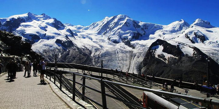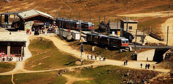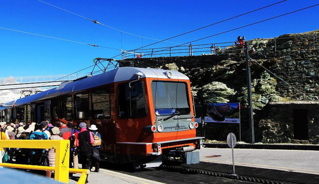 从采尔马特村乘坐6人缆车到Furi站,线路在这里变为两条,搭乘去往Trockener Steg站方向的缆车。在Trockener Steg站再换乘缆车就开始进入登顶的最后一段行程,将可以看到真正惊心动魄的景象。