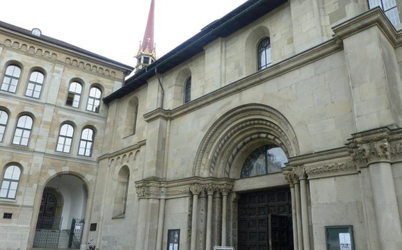 教堂所有豪华的装饰在很久前就被清除了,只有彩色玻璃窗以及入口处装饰华丽的青铜门还留有一点艺术色彩。教堂设有宗教改革博物馆和苏黎世大学神学院,部禁止拍照。